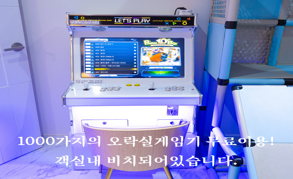 "1000가지 오락실 게임, 객실안에서 무료이용가능합니다."